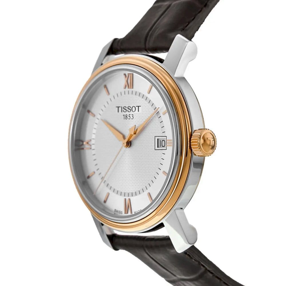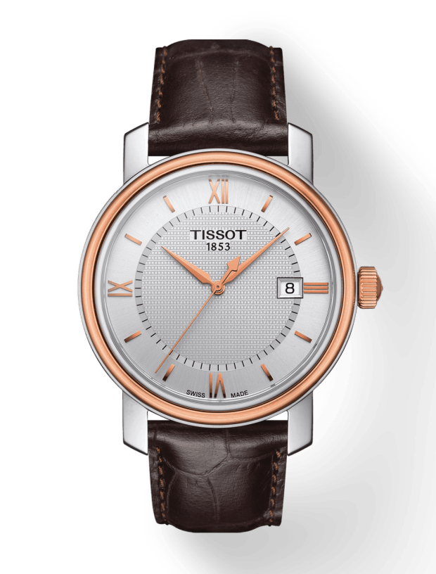 The Tissot Bridgeport timepieces wrap their automatic movements in sophisticated style. Traditional watchmaking is celebrated through the use of gold or silver colour schemes and their combinations. The various models of this collection, with their different dials and subtle details providing them with their own look and style, make sure there is a watch for everyone, while a choice of attachments adds a further touch of class. These watches are the perfect partners for lovers of good-looking precision.