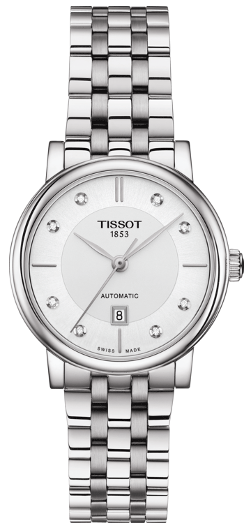 Tissot Carson Premium Automatic Lady Diamonds Silver Dial Silver Steel Strap Watch for Women - T122.207.11.036.00