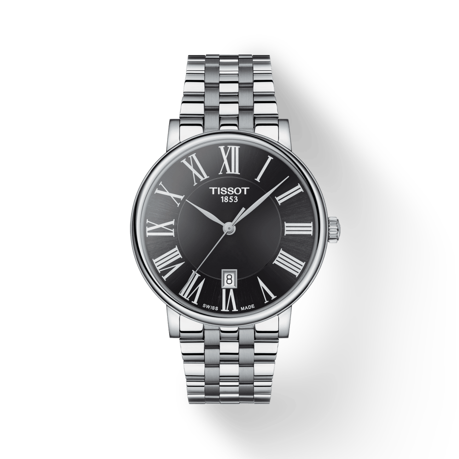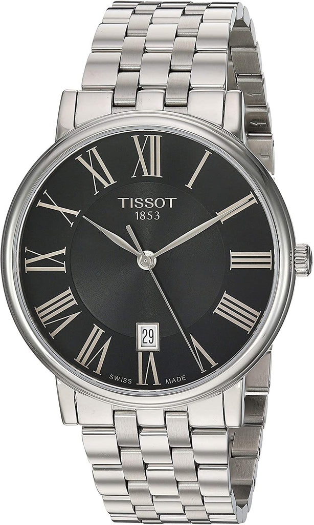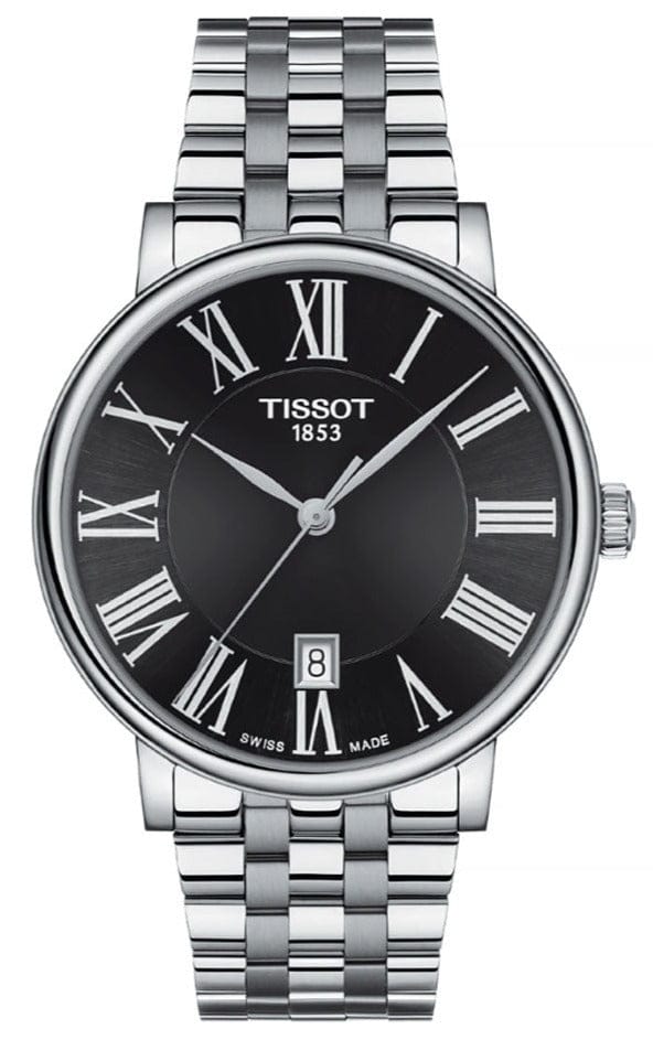 Expertly crafted with precision and style, the Tissot Carson Premium Black Dial Silver Steel Strap Watch is the perfect accessory for the modern man. This timepiece features a sleek black dial and a durable steel strap, creating a sophisticated and timeless look. Elevate your aesthetic with this premium watch.