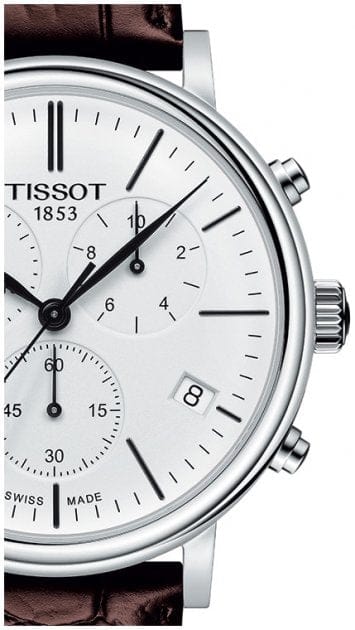 Tissot Carson Premium Chronograph White Dial Brown Leather Strap Watch For Men - T122.417.16.011.00