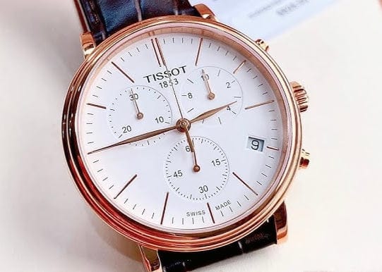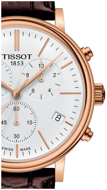 Tissot Carson Premium Chronograph White Dial Brown Leather Strap Watch For Men - T122.417.36.011.00