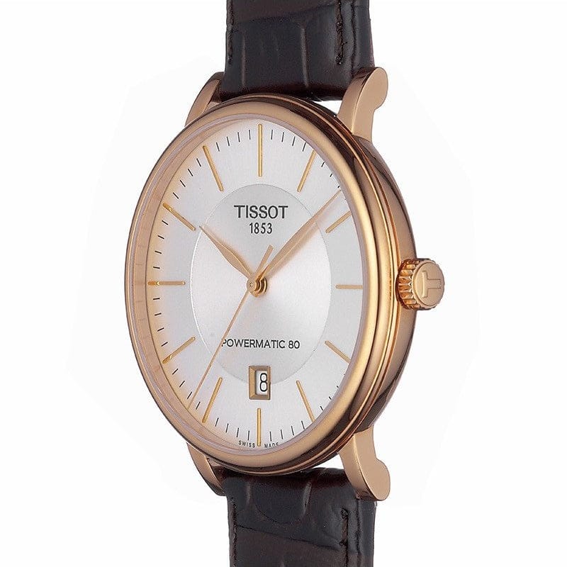 Tissot Carson Premium Powermatic 80 White Dial Brown Leather Strap Watch For Men - T122.407.36.031.00