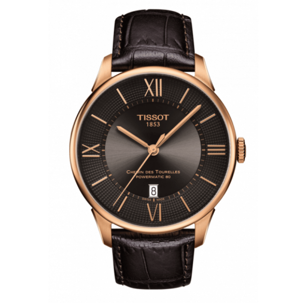 Tissot Chemin des Tourelles Powermatic 80 Brown Dial Brown Leather Strap Watch for Men - T099.407.36.448.00