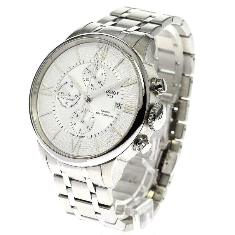 Tissot Chemin des Tourelles Automatic Chronograph White Dial Silver Steel Strap Watch for Men - T099.427.11.038.00