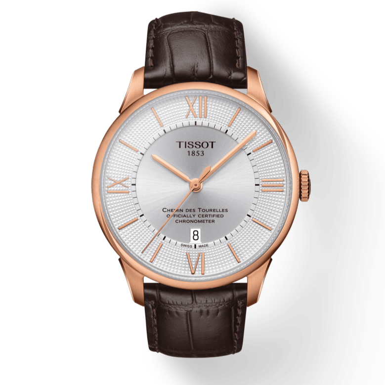 Tissot Chemin Des Tourelles Powermatic 80 Cosc Silver Dial Brown Leather Strap Watch For Men - T099.408.36.038.00