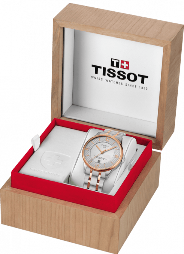 The Tissot Chemin des Tourelles Helvetic Pride Special Edition pays tribute to the brand's Swiss heritage. The caseback resembles a Swiss franc coin and depicts Helvetia, the female national personification of Switzerland, standing proudly and surrounded by 23 stars representing the states of the Swiss Confederation. The dial also pays tribute to Switzerland, with the men's version decorated with the Swiss cross pattern and the ladies' version subtly embellished with mother-of-pearl.