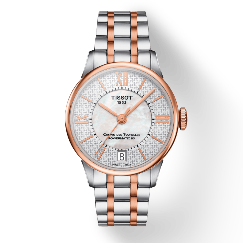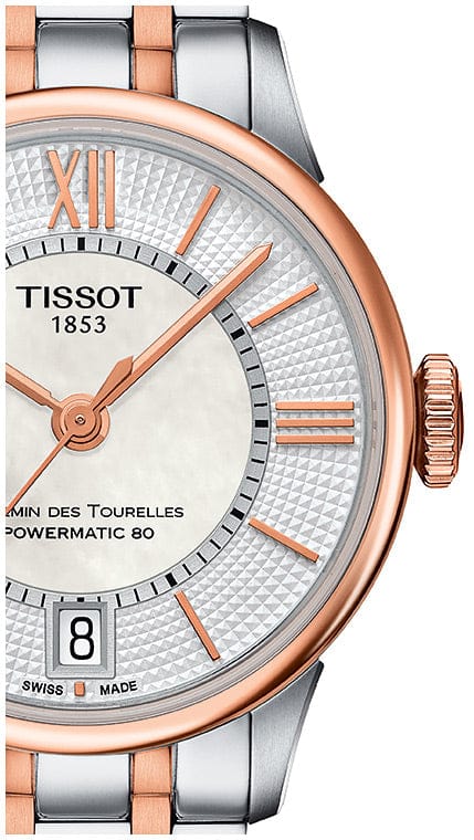 Tissot Chemin Des Tourelles Powermatic 80 Helvetic Price Lady Silver Dial Two Tone Steel Strap Watch For Women - T099.207.22.118.01