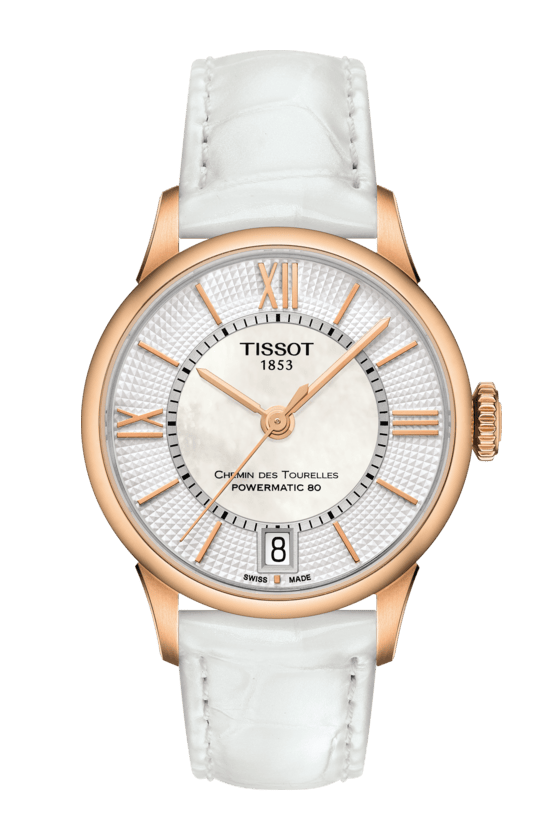 Tissot Chemin Des Tourelles Powermatic 80 Lady Silver Dial White Leather Strap Watch For Women - T099.207.36.118.00
