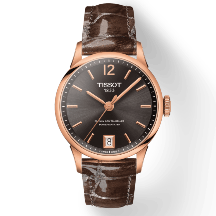 Tissot Chemin Des Tourelles Powermatic 80 Lady Brown Dial Brown Leather Strap Watch For Women - T099.207.36.447.00