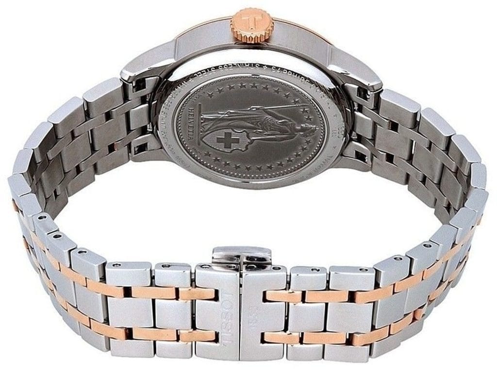 The Tissot Chemin des Tourelles Helvetic Pride Special Editions pay tribute to the brand's Swiss heritage. The case back resembles a Swiss franc coin and depicts Helvetia, the female national personification of Switzerland, standing proudly and surrounded by 23 stars representing the states of the Swiss Confederation. The dial also pays tribute to Switzerland, with the men's version decorated with the Swiss cross pattern and the ladies' version subtly embellished with mother-of-pearl.