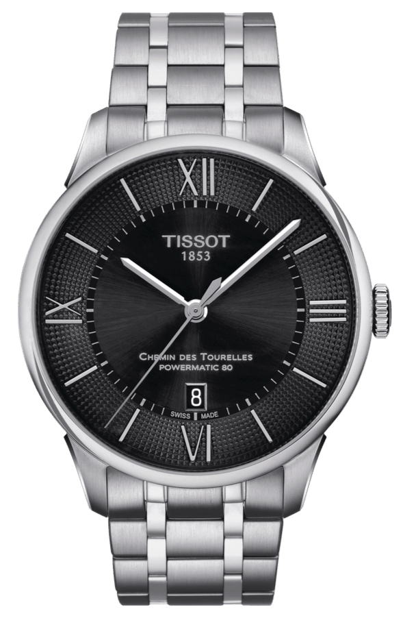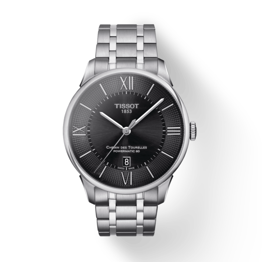 Tissot Chemin Des Tourelles Powermatic 80 Black Dial Silver Steel Strap Watch For Men - T099.407.11.058.00