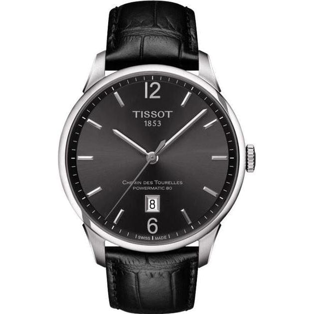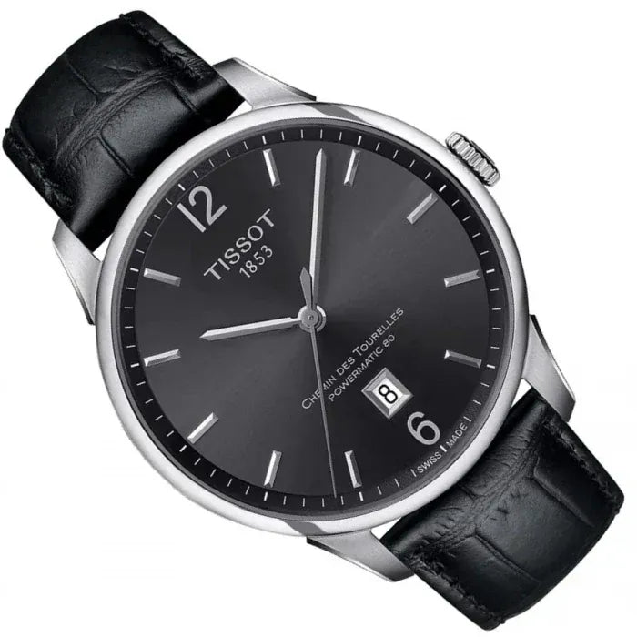 Expertly crafted and stylishly designed, the Tissot Chemin Des Tourelles Powermatic 80 watch is the perfect accessory for any man. Boasting a sleek black dial and black leather strap, this watch is both fashionable and functional. With its Powermatic 80 movement, it offers 80 hours of power reserve, making it reliable and long-lasting. Elevate your style with this impressive timepiece.