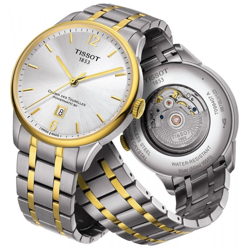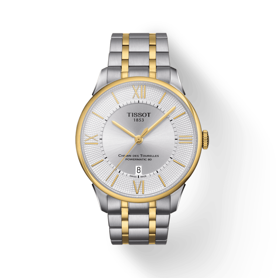 Tissot Chemin Des Tourelles Powermatic 80 Silver Dial Two Tone Steel Strap Watch For Men - T099.407.22.038.00
