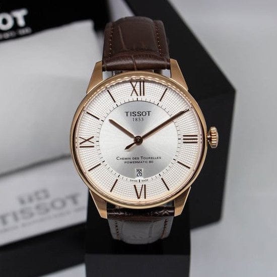 Tissot Chemin Des Tourelles Powermatic 80 Silver Dial Brown Leather Strap Watch For Men - T099.407.36.038.00