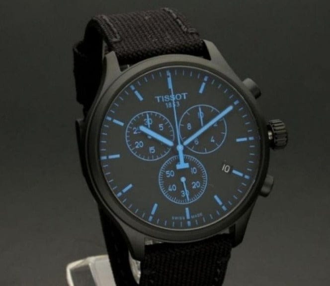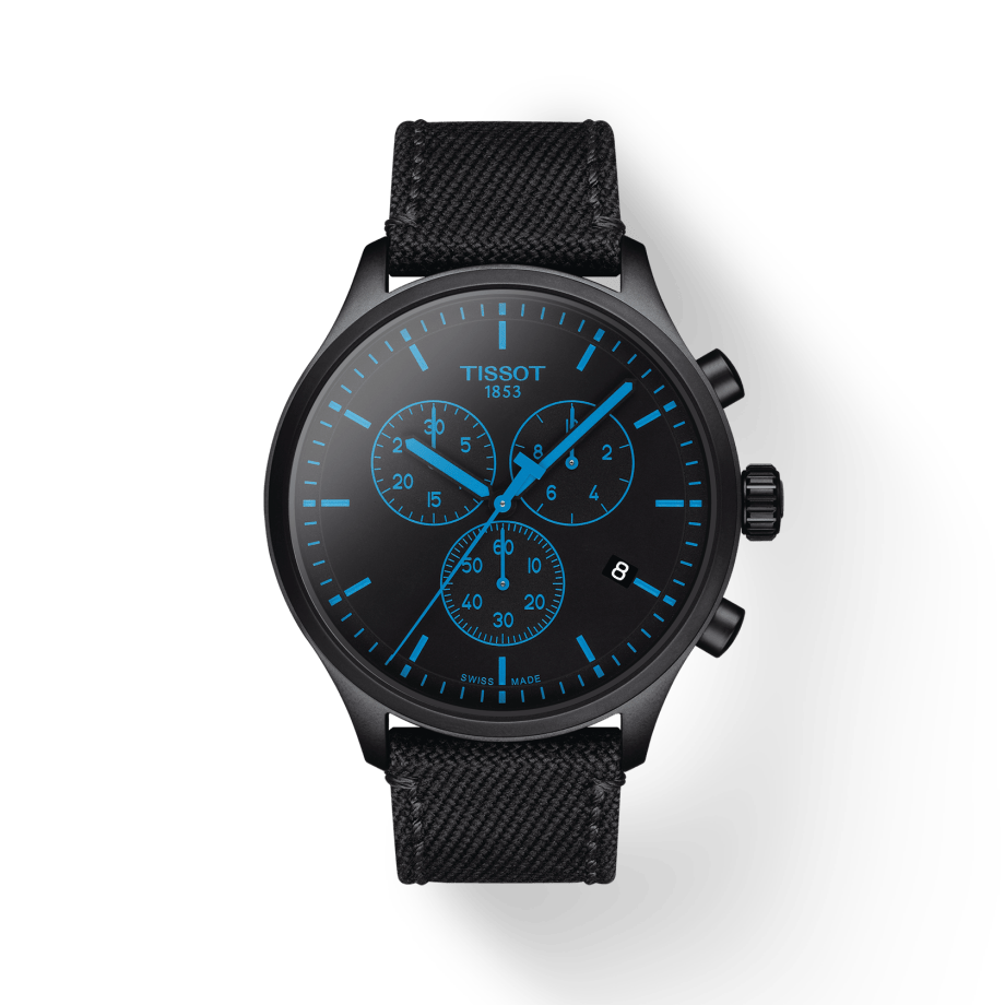 The Tissot Chrono XL Exclusive Chronograph watch strikes the perfect balance between informal and smart with its low-key fabric strap and powerful black-and-blue colour scheme. Hard-wearing sapphire glass keeps it looking good as new, while the luminescent hands mean the watch looks great even when the sun goes down. Sporty, sophisticated, stylish – what more do you need?