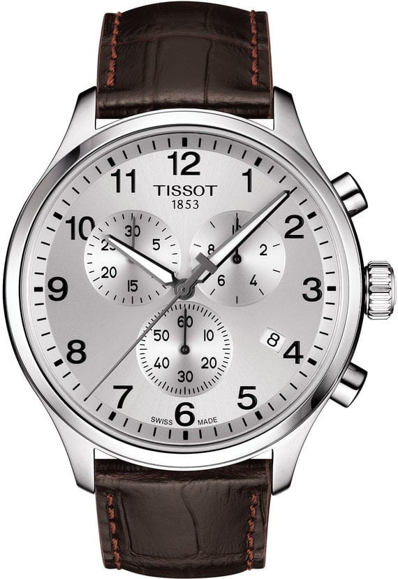 Tissot Chrono XL Silver Dial Brown Leather Strap Watch For Men - T116.617.16.037.00