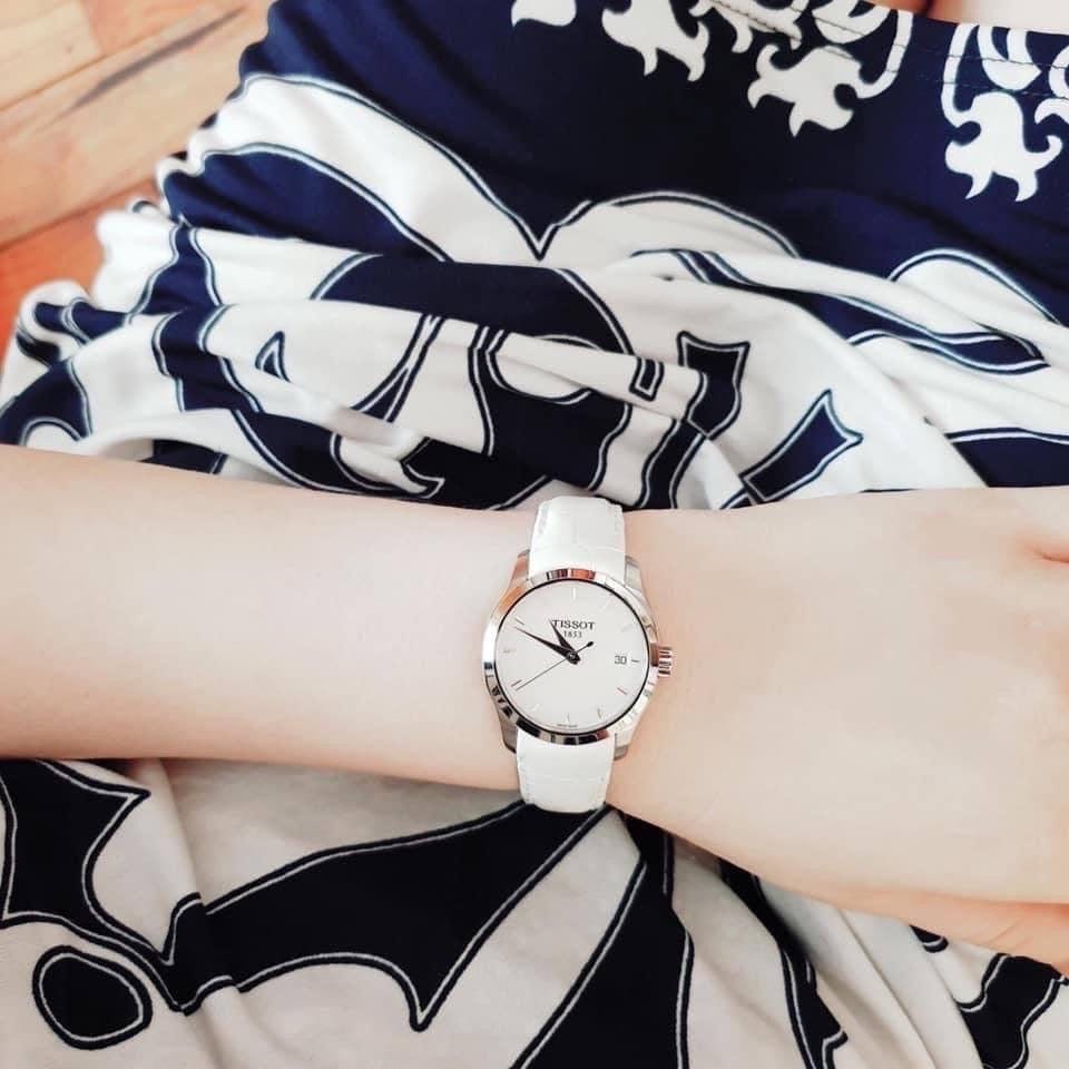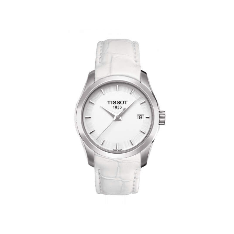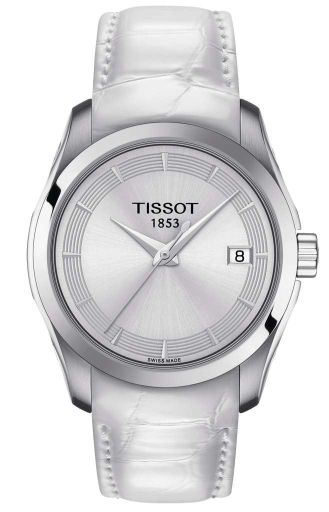 Tissot Couturier Lady Silver Dial White Leather Strap Watch For Women - T035.210.16.011.00