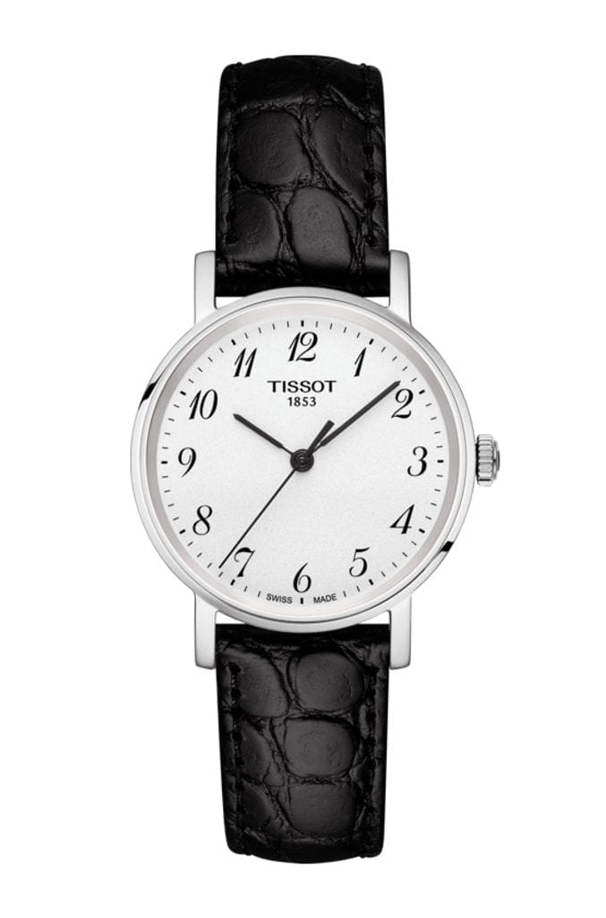 Tissot Everytime Desire Medium White Dial Black Leather Strap Watch For Men - T109.410.16.032.00