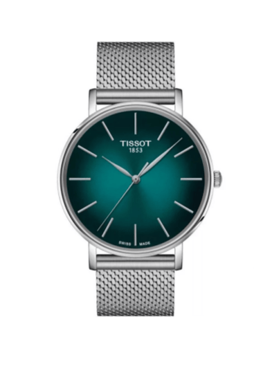Tissot Everytime Gent Green Dial Silver Mesh Bracelet Watch for Men - T143.410.11.091.00
