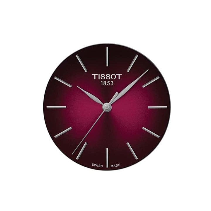 | Watch face: | Burgundy color with darker / lighter reflections, Hands/Indexes - silver color, Logo TISSOT 1853 |