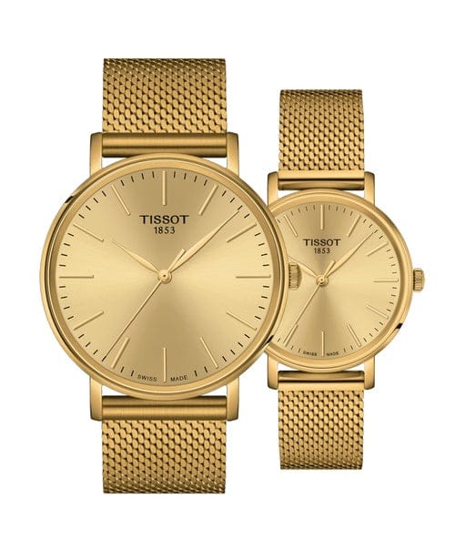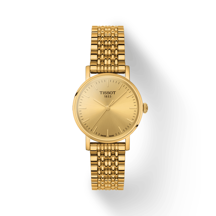 Tissot Everytime Lady Gold Dial Gold Mesh Bracelet Watch for Women - T143.210.33.021.00