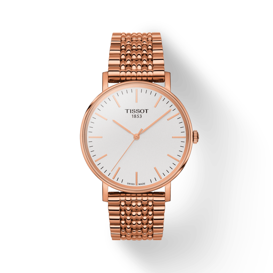 Tissot Everytime Medium White Dial Rose Gold Mesh Bracelet Watch For Men - T109.410.33.031.00