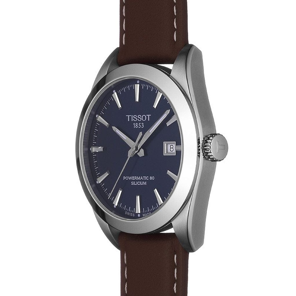 Tissot Gentlemen Powermatic 80 Silicium Blue Dial Brown Leather Strap Watch For Men - T127.407.16.041.00