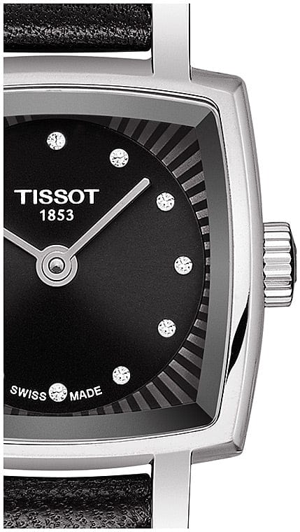 Tissot Lovely Square Quartz Diamonds Black Dial Black Leather Strap Watch For Women - T058.109.16.056.00