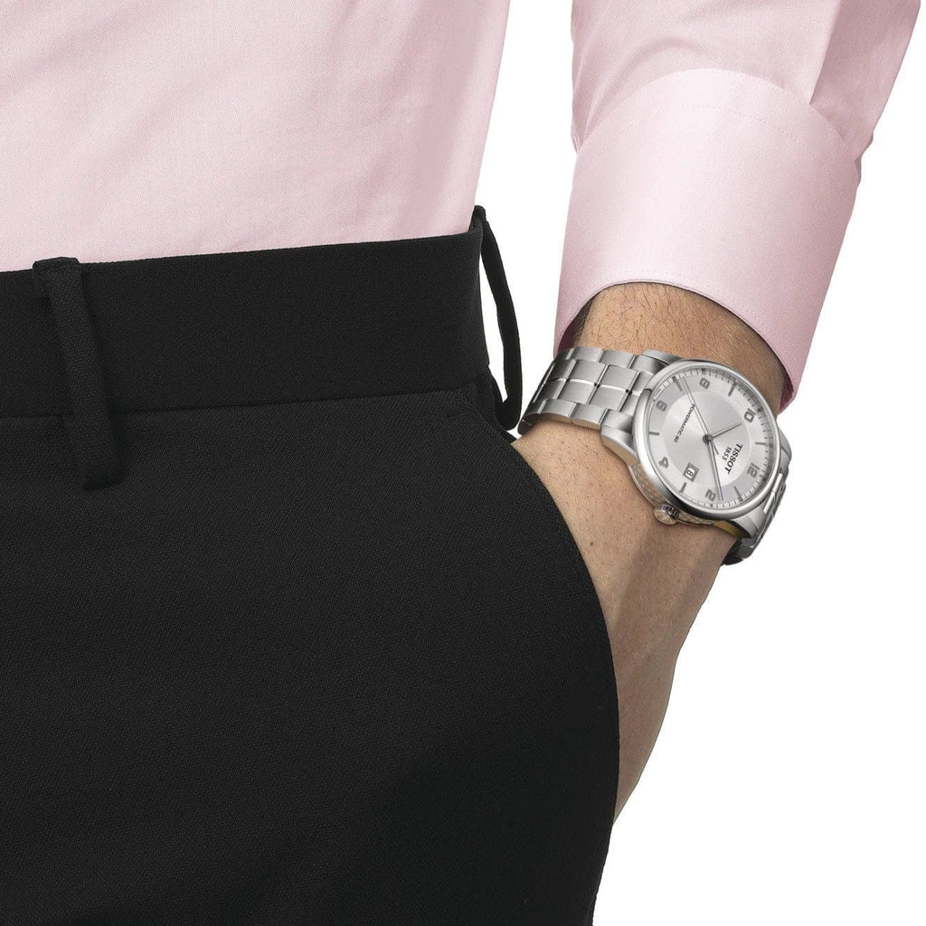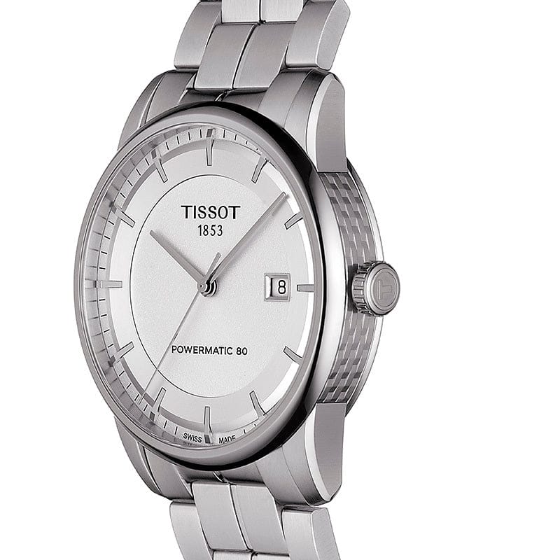 Discover timeless elegance with the Tissot Luxury Powermatic 80 watch for men. Featuring a silver dial and sleek silver steel strap, this watch is the perfect addition to any wardrobe. With the Powermatic 80 movement, enjoy a reliable and accurate timepiece for years to come. Elevate your style with Tissot Luxury.