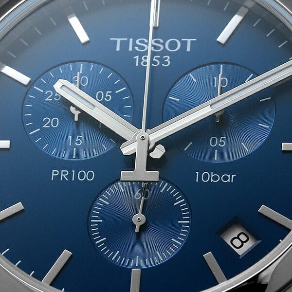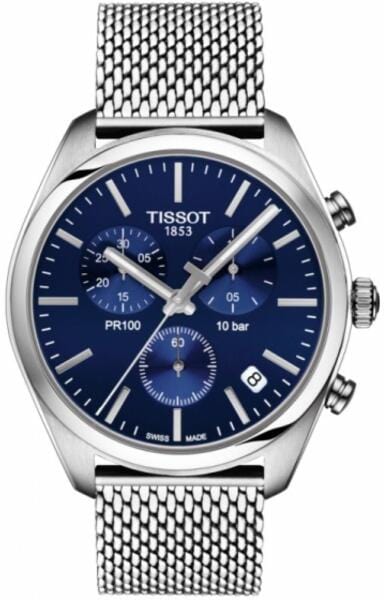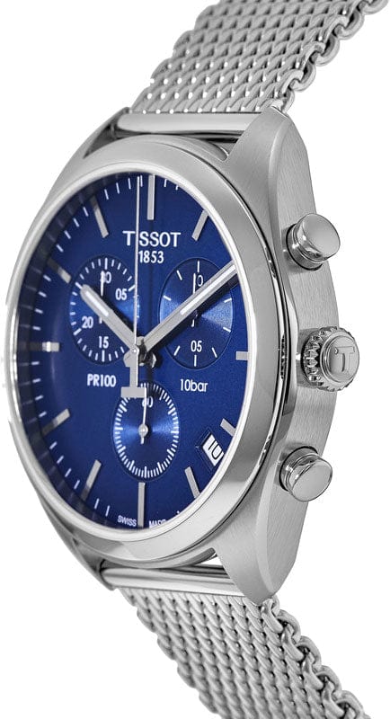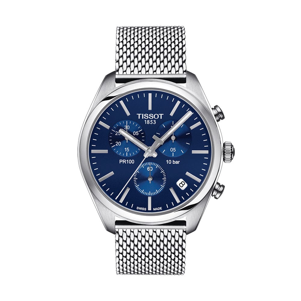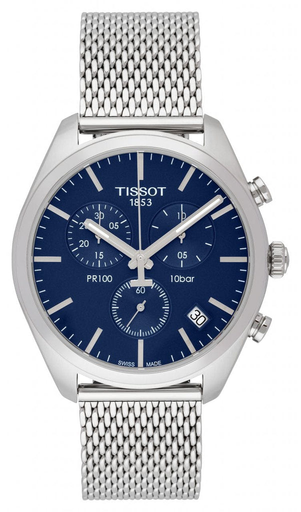 Tissot PR 100 Chronograph Blue Dial Silver Mesh Bracelet Watch for Men - T101.417.11.041.00