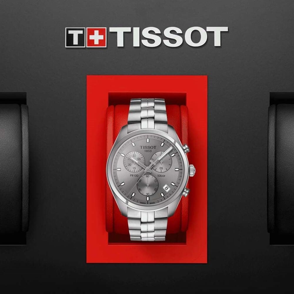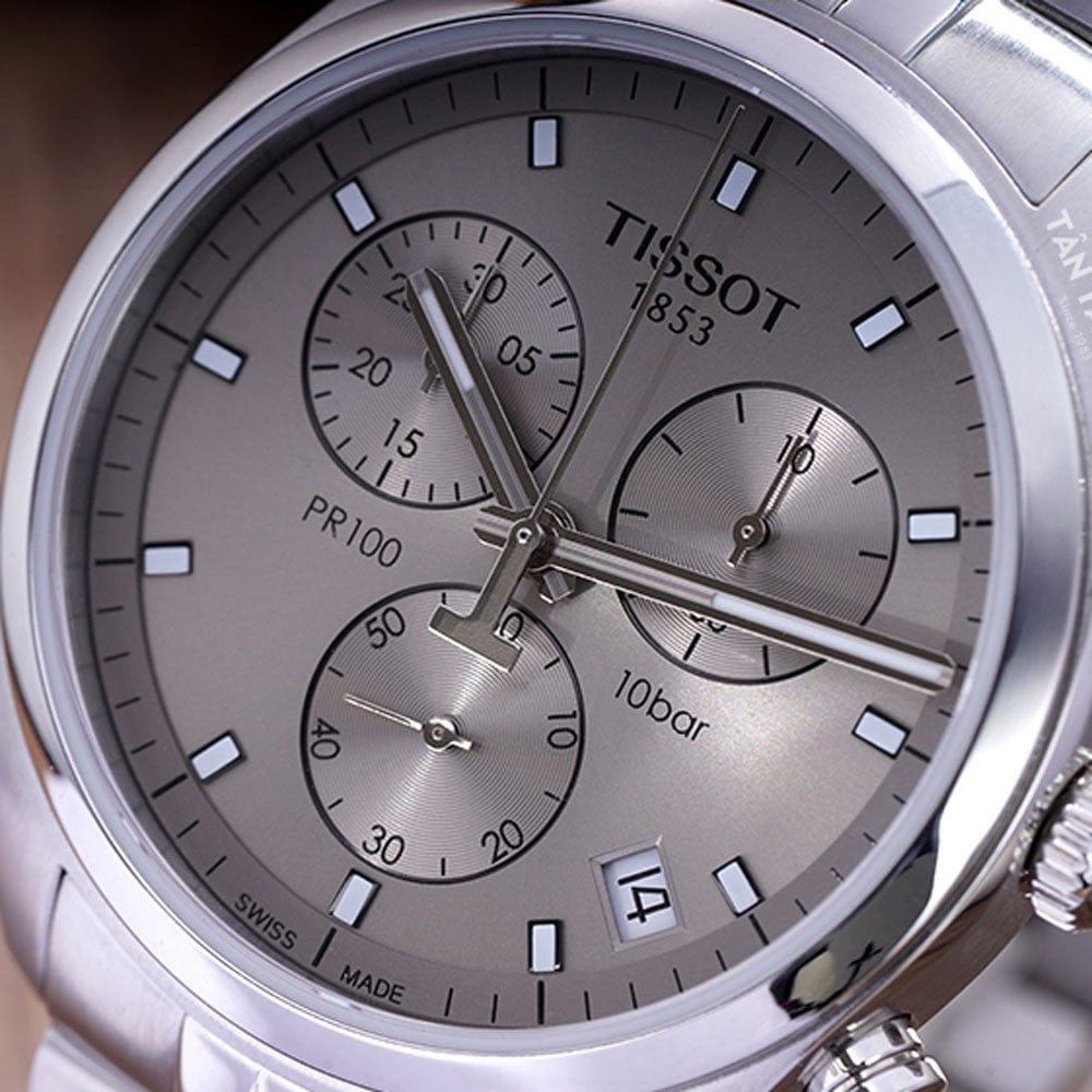 Tissot PR 100 Chronograph Grey Dial Silver Steel Strap Watch for Men - T101.417.11.071.00