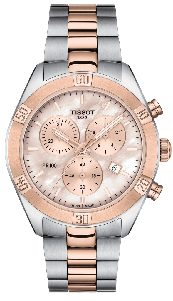 Tissot PR 100 Sport Chic Chronograph Mother of Pearl Dial Two Tone Steel Strap Watch for Women - T101.917.22.151.00