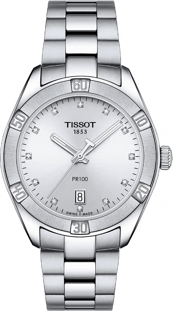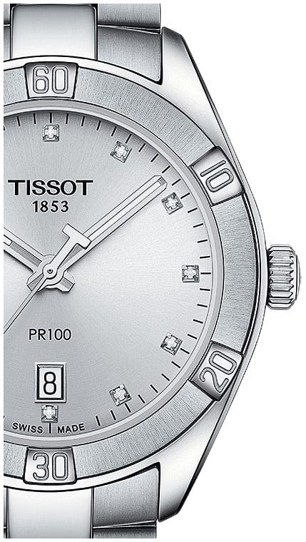 The Tissot PR 100 is a classic watch destined to be worn often and for every occasion. It features the simple and elegant face the collection is loved for, with the pared-back aesthetic symbolizing luxury, quality and classic style. This women's model from the Tissot PR 100 collection has a 316L stainless steel case and a silver-colored dial.
