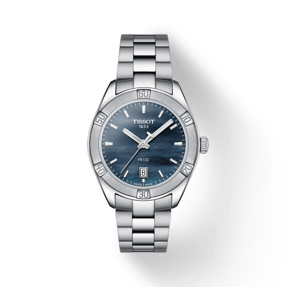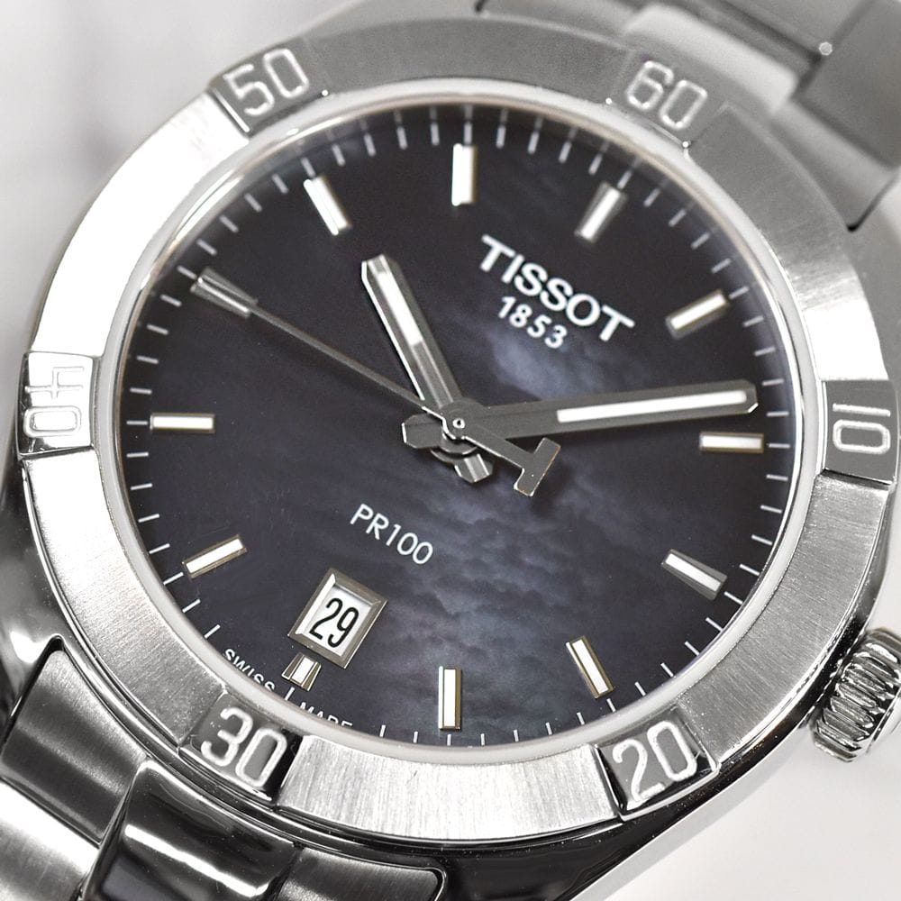 The Tissot PR 100 is a classic watch destined to be worn often and for every occasion. It features the simple and elegant face the collection is loved for, with the pared-back aesthetic symbolizing luxury, quality and classic style. This women's model from the Tissot PR 100 collection has a 316L stainless steel case and a black mother-of-pearl dial.