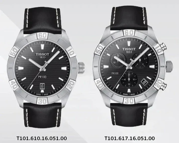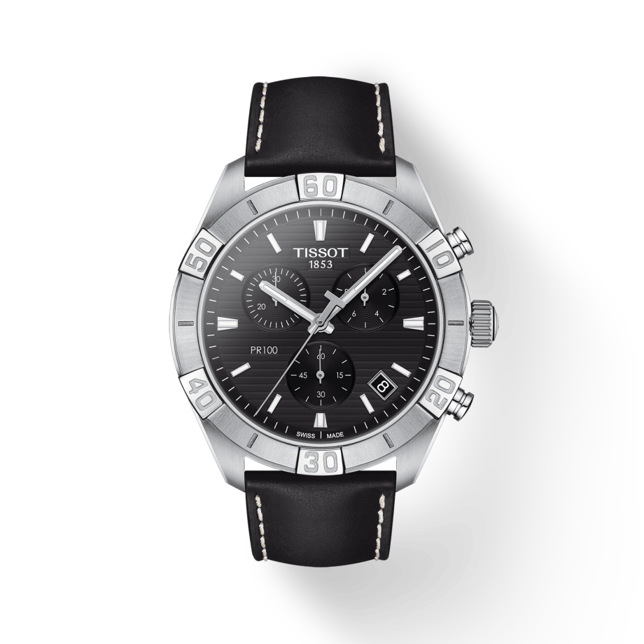 Tissot PR 100 Sport Quartz Chronograph Black Dial Black Leather Strap Watch For Men - T101.617.16.051.00