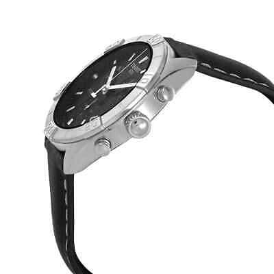 316L stainless steel case with a black leather strap. Fixed stainless steel bezel. Black dial with luminous silver-tone hands and index hour markers. Minute markers around the outer rim. Dial Type: Analog. Luminescent hands and markers. Date display between 4 and 5 o'clock position. Chronograph - three sub-dials displaying: 60 second, 30 minute and 1/10th of a second. ETA caliber G10.212 quartz movement. Scratch resistant sapphire crystal. Pull / push crown. Solid case back. Round case shape. Case size: 44 mm. Case thickness: 11.1 mm. Band width: 22 mm. Tang clasp. Water resistant at 100 meters / 330 feet. Functions: chronograph, rattrapante, date, hour, minute, small second. PR100 Series. Sport watch style. Watch label: Swiss Made. Tissot PR100 Chronograph Quartz Black Dial Men's Watch T101.617.16.051.00.