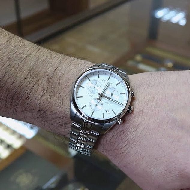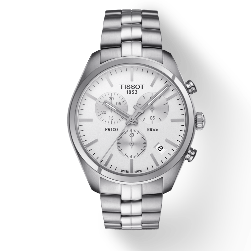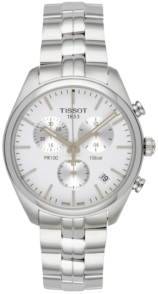 Tissot T Classic PR 100 Chronograph Silver Dial Silver Steel Strap Watch For Men - T101.417.11.031.00