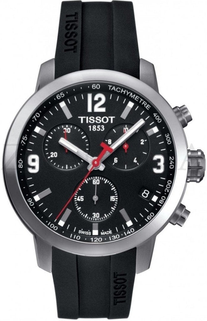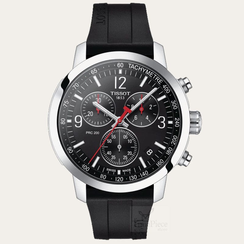 Tissot PRC 200 Chronograph Black Dial Black Rubber Strap Watch for Men - T114.417.17.057.00