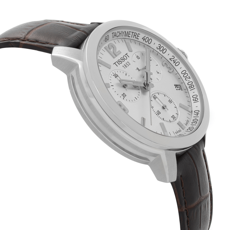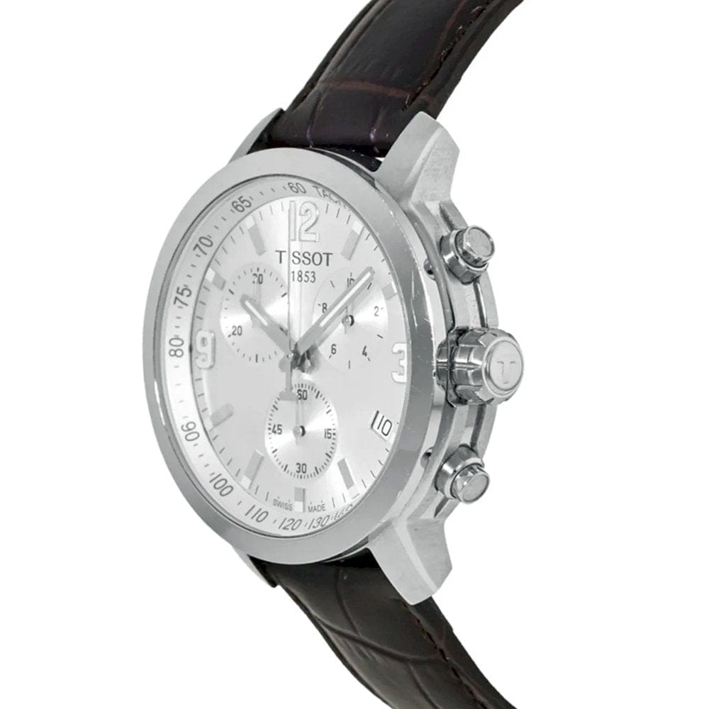 Tissot PRC 200 Chronograph Silver Dial Brown Leather Strap Watch For Men - T055.417.16.037.00