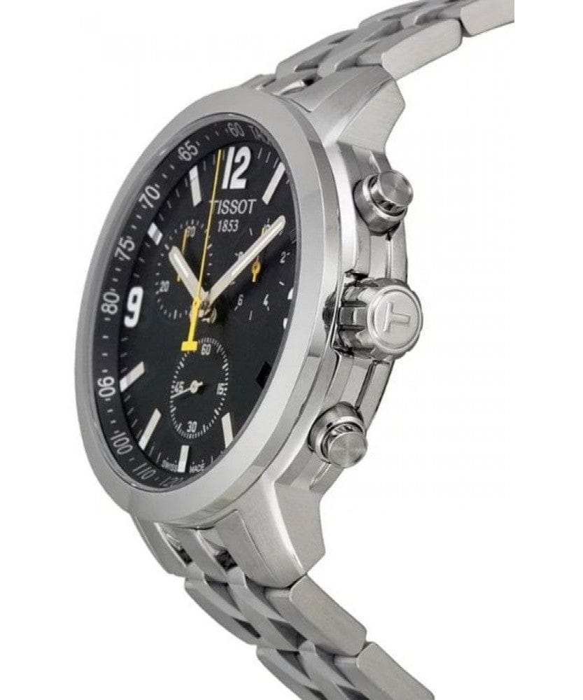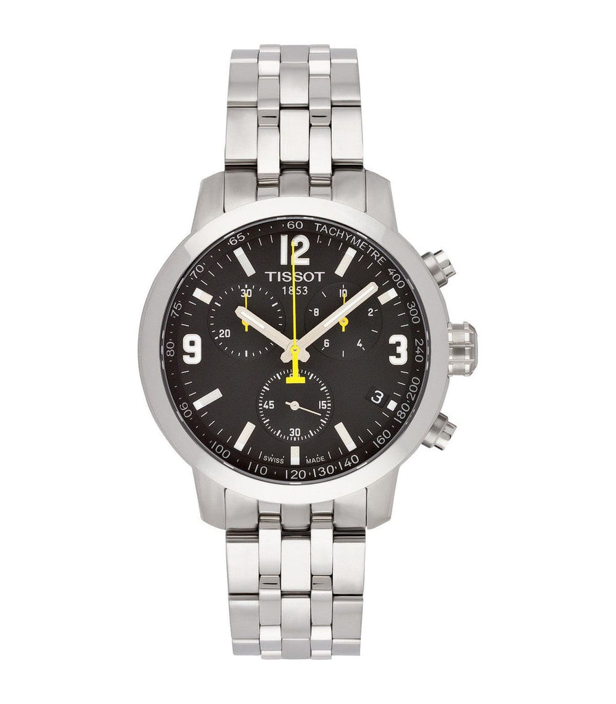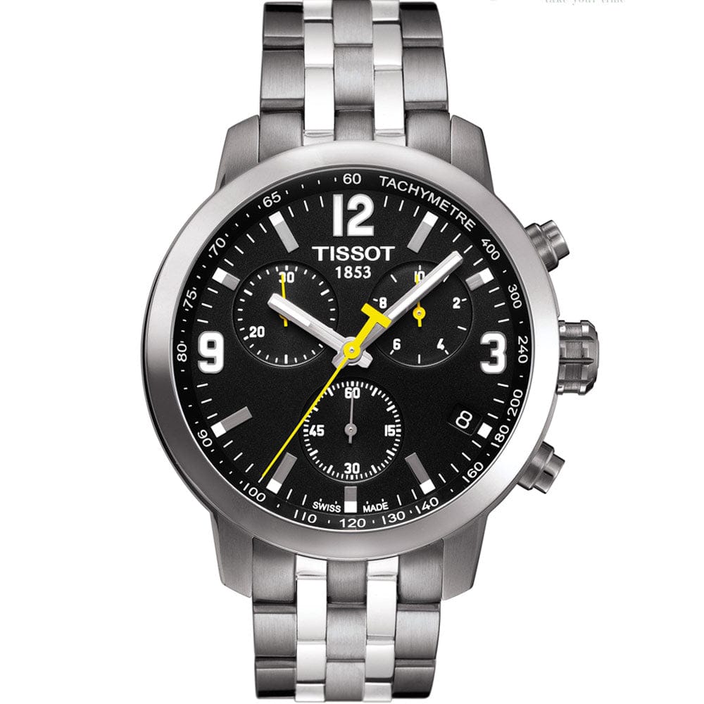 Tissot PRC 200 Chronograph Black Dial Silver Steel Strap Watch For Men - T055.417.11.057.00