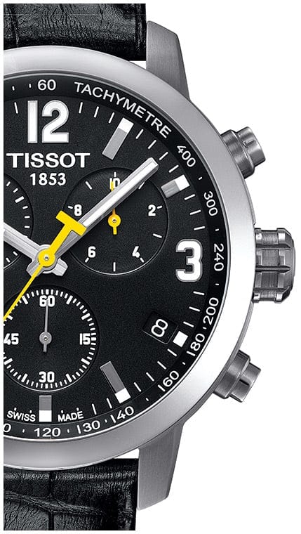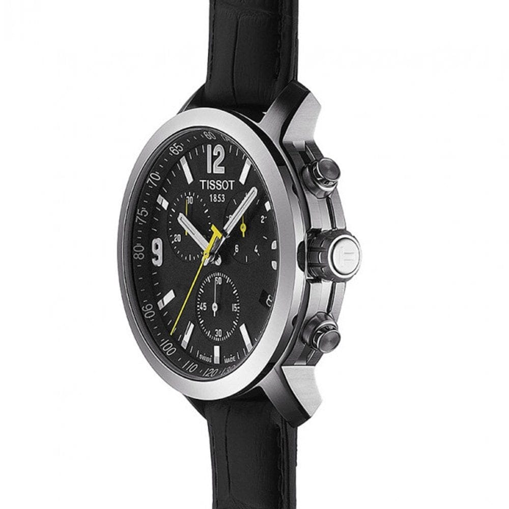 Tissot PRC 200 Chronograph Black Dial Black Leather Strap Watch For Men - T055.417.16.057.00