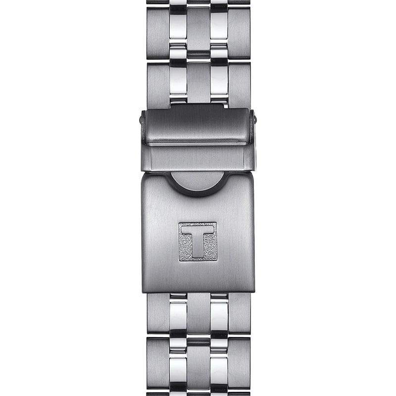 Stainless steel case with a stainless steel bracelet. Fixed stainless steel bezel. White dial with luminous silver-tone hands and index hour markers. Arabic numerals mark the 3, 9 and 12 o'clock positions. Minute markers. Tachymeter around the outer rim. Dial Type: Analog. Luminescent hands and markers. Date display at the 4 o'clock position. Chronograph - three sub-dials displaying: 60 second, 30 minute and 1/10th of a second. Quartz movement. Scratch resistant sapphire crystal. Pull / push crown. Solid case back. Case diameter: 41 mm. Round case shape. Band length: 7 inches. Deployment clasp with a push button release. Water resistant at 100 meters / 330 feet. Functions: chronograph, tachymeter, date, hour, minute, second. Casual watch style. Tissot PRC200 Chronograph White Dial Stainless Steel Men's Watch T0554171101700.