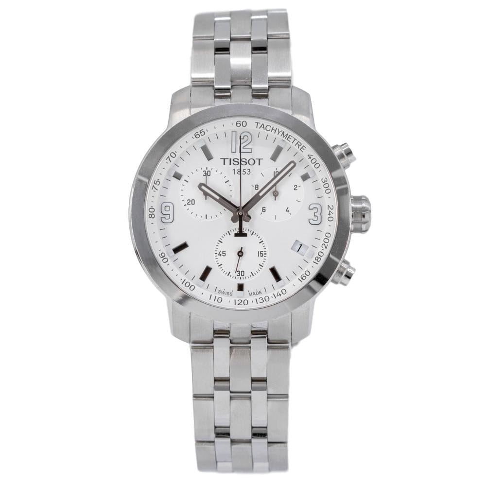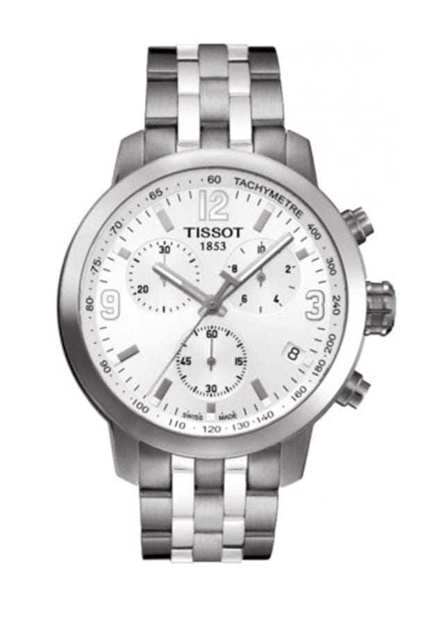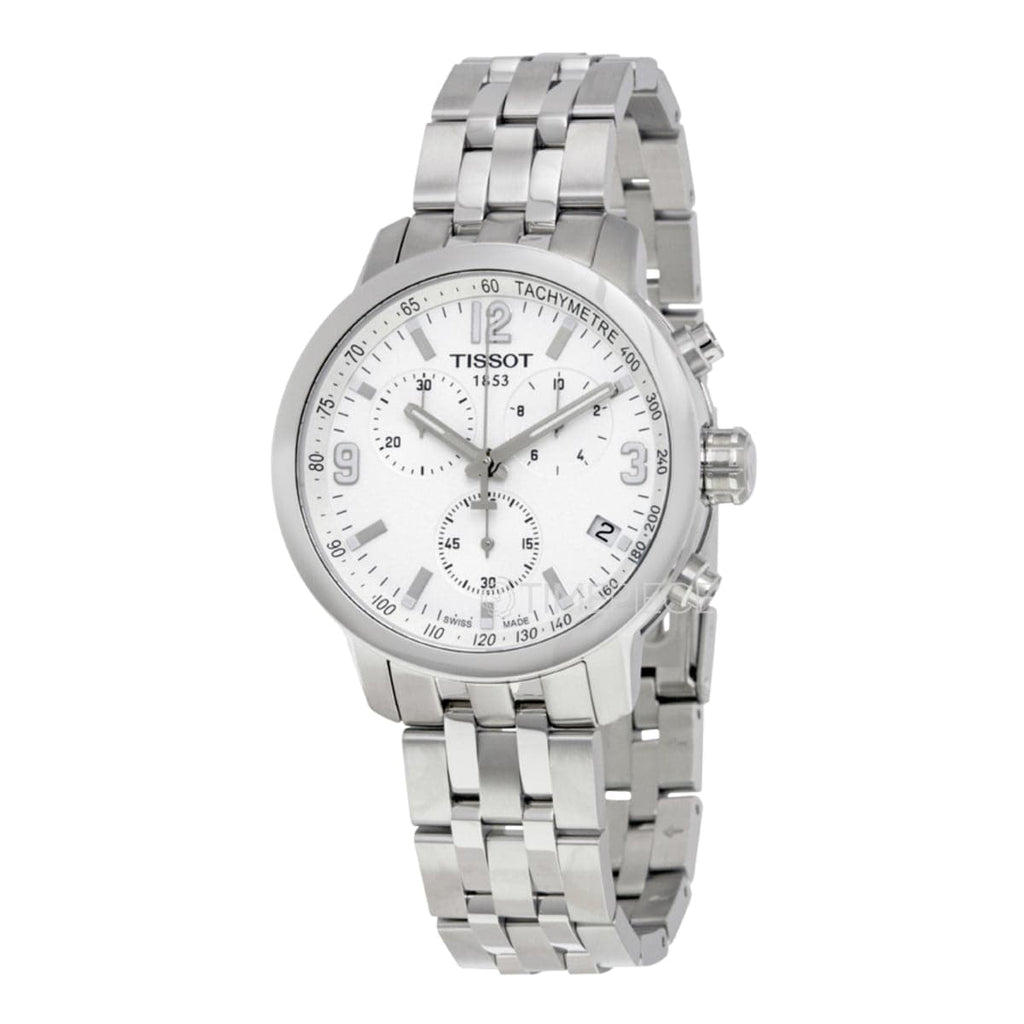 Tissot PRC 200 Chronograph White Dial Silver Steel Strap Watch For Men - T055.417.11.017.00