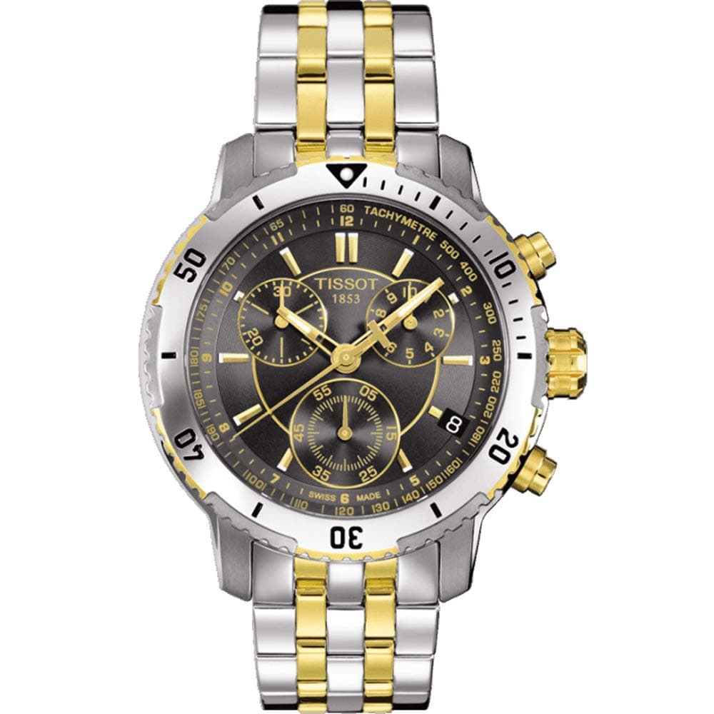Tissot T Sport PRS 200 Chronograph Black Dial Two Tone Steel Strap Watch For Men - T067.417.22.051.00