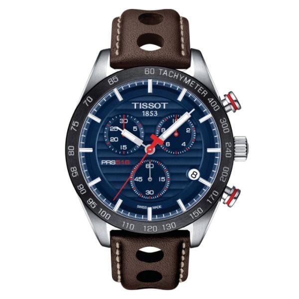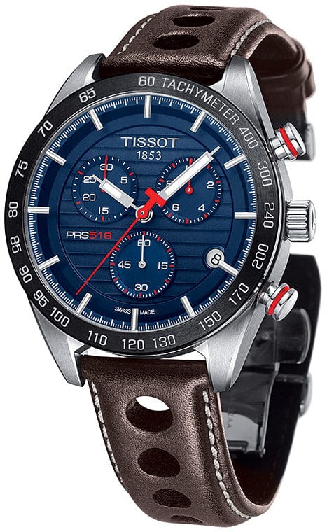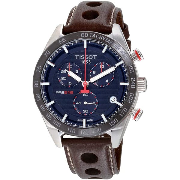 Tissot PRS 516 Chronograph Blue Dial Brown Leather Strap Watch For Men - T100.417.16.041.00