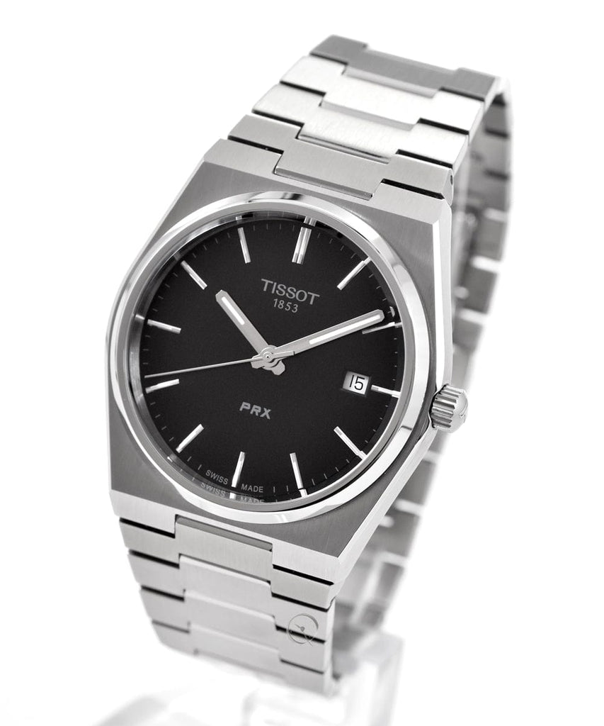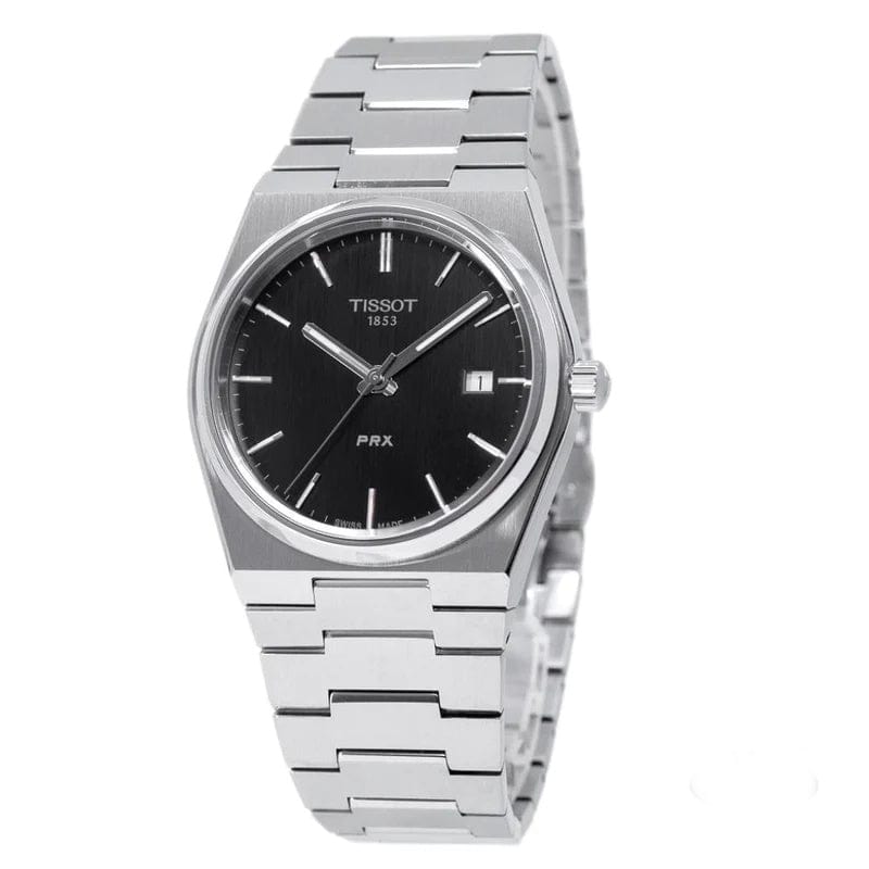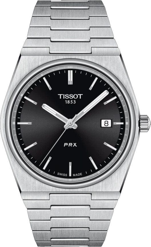 Experience a stylish and timeless timepiece with the Tissot PRX Quartz watch. This watch features a sleek black dial and a durable silver steel strap, perfect for any occasion. With precise quartz movement and Tissot's expert craftsmanship, this watch is both functional and elegant. Elevate your wardrobe with the Tissot PRX Quartz watch.