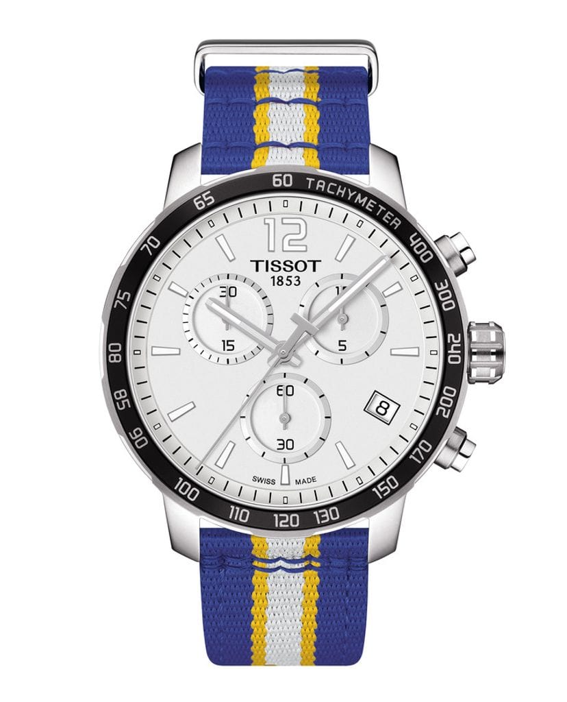 Tissot Quickster Chronograph NBA Golden State Warriors White Dial Two Tone NATO Strap Watch for Men - T095.417.17.037.15