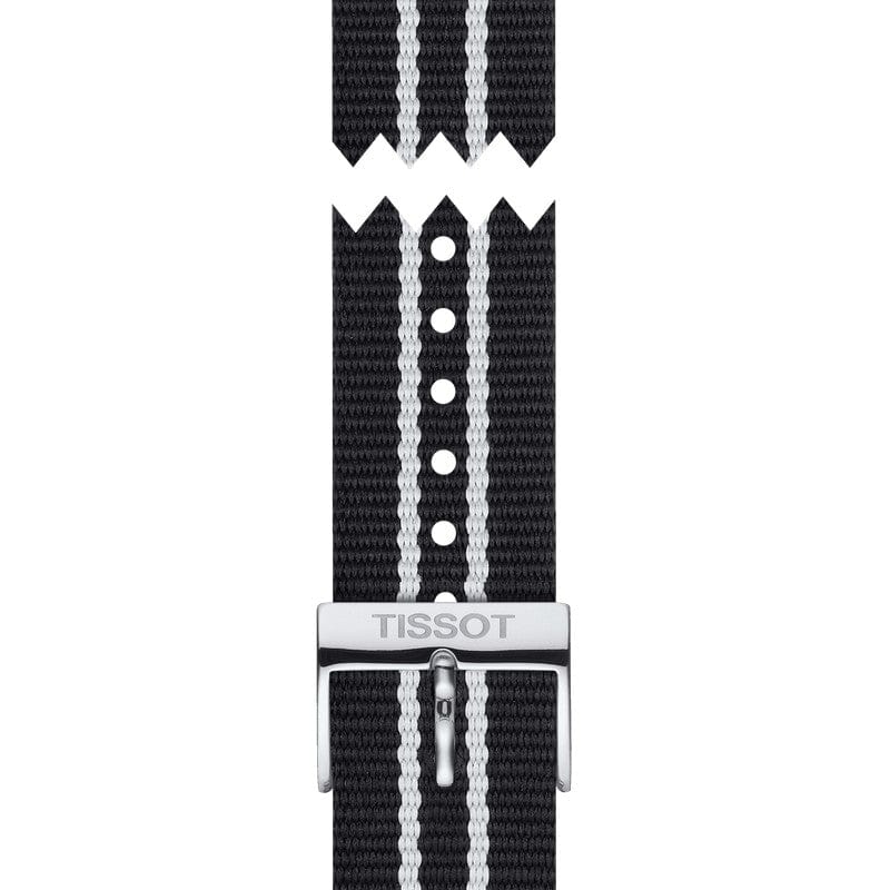 The beautiful Tissot T095.417.17.037.07 watch features a stainless steel 42mm case, with a fixed bezel, and a silver dial covered by a scratch resistant sapphire crystal. The stylish wristwatch is equipped with an exclusive synthetic nylon which combines comfort and sturdiness. This horological trendy device has chronograph, date, hour, minute, second, tachymeter functions.