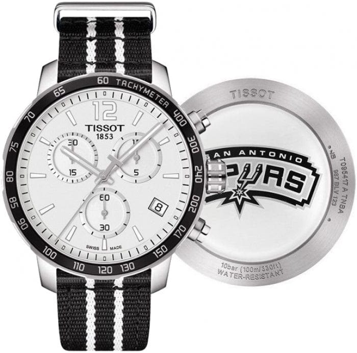 Tissot Quickster Chronograph NBA San Antonio Spurs Edition White Dial Two Tone NATO Strap Watch for Men - T095.417.17.037.07