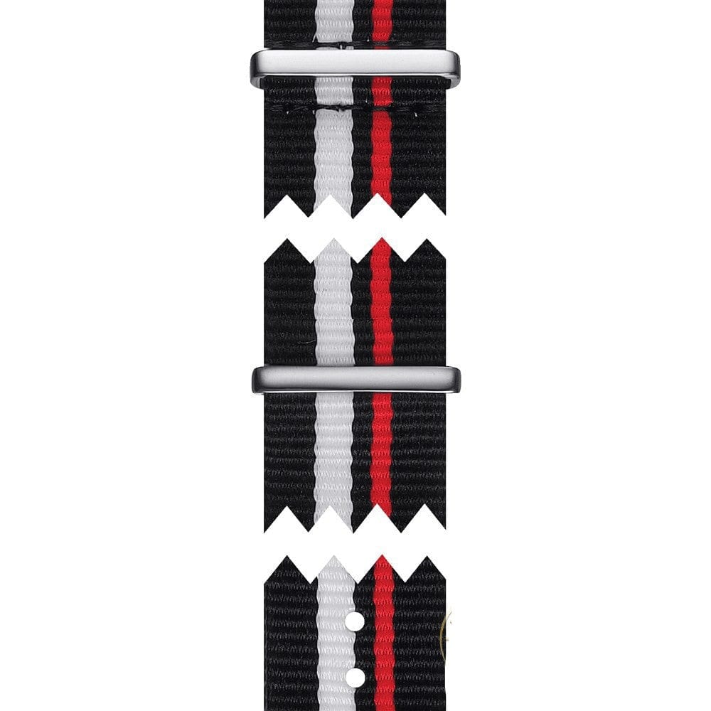 White, Black, Red Fabric strap with standard buckle |